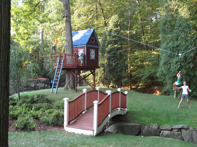 The first few times down, it feels great to have a "spotter" waiting with open arms as you zip by safe & sound on Barbara's heavy duty Zip Line ride. One thing you can be sure of is that someone else will always be in the "next" position waiting for their turn to take off! |