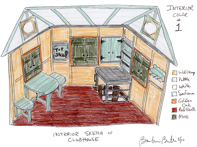 Barbara's conceptual Artist Sketch of the interior with placement of the play accessories.