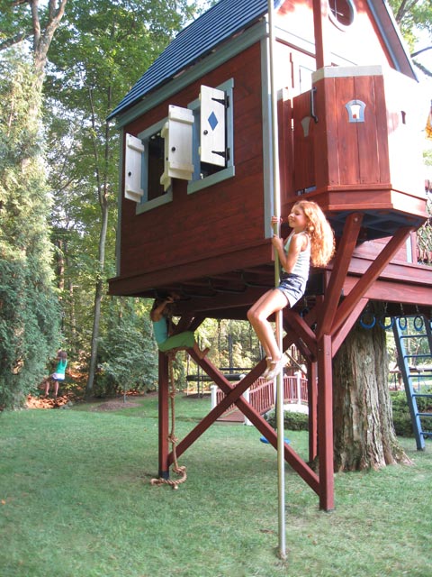 Bluebird Treehouse provides lots of options: from flying down the firepole to swinging hand-over-hand on the monkey bars, to disappearing into the distance on the fabulous Zip Line ride (to just name a few).