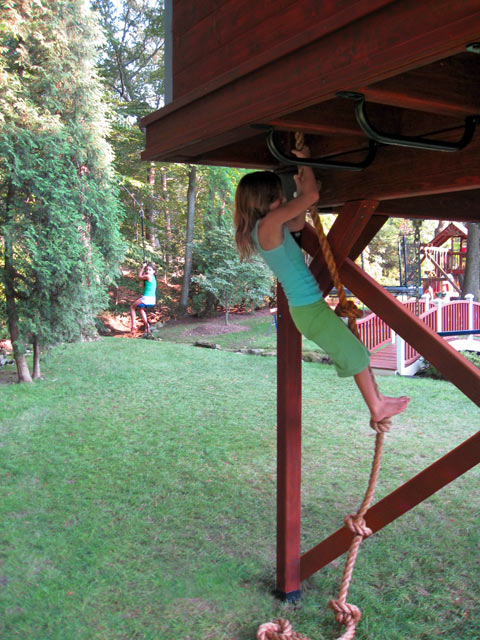 Barbara made it even more challenging by providing a giant knotted rope climb as the way up to the monkey bars. Fun!