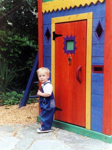 The Hideaway Fort is great for young kids and tight spaces. The standard Hideaway comes with a Rope Net Ladder, Rock Climbing Wall and Firepole. Even so, you always have options. As seen here, a Pueblo Ladder can be substituted for the Rope Net Ladder. Best of all, the colors are always chosen by the client - tell us what colors you like and we will help you create your own color palette. |