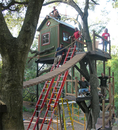 Barbara and crew hard at work installing the Tree Top Inn. This is the final stage in the creative process that brings the original concept to an exciting reality!