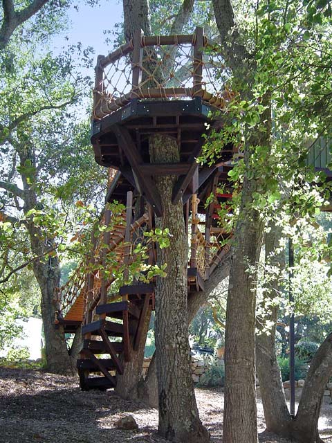 Take a rest and view the beautiful scenery in this hexagon tree perch that wraps around the trunk of the tree.